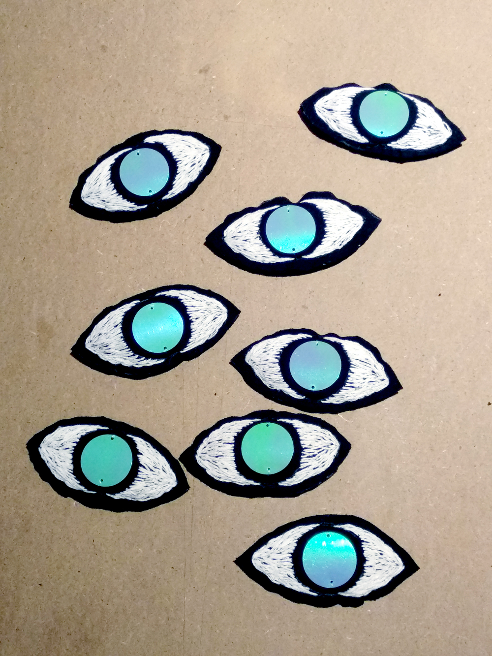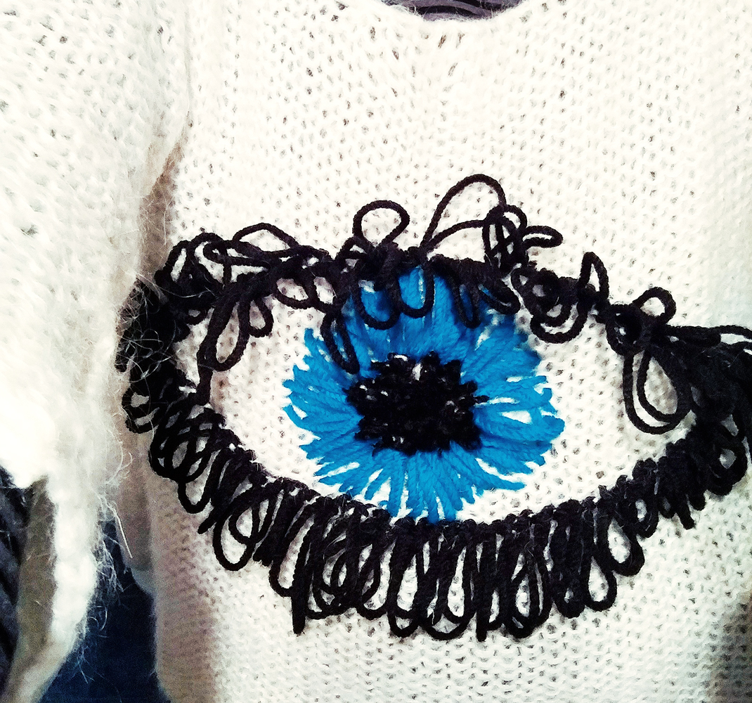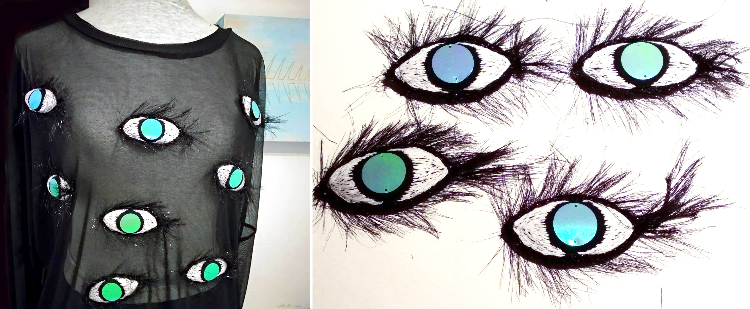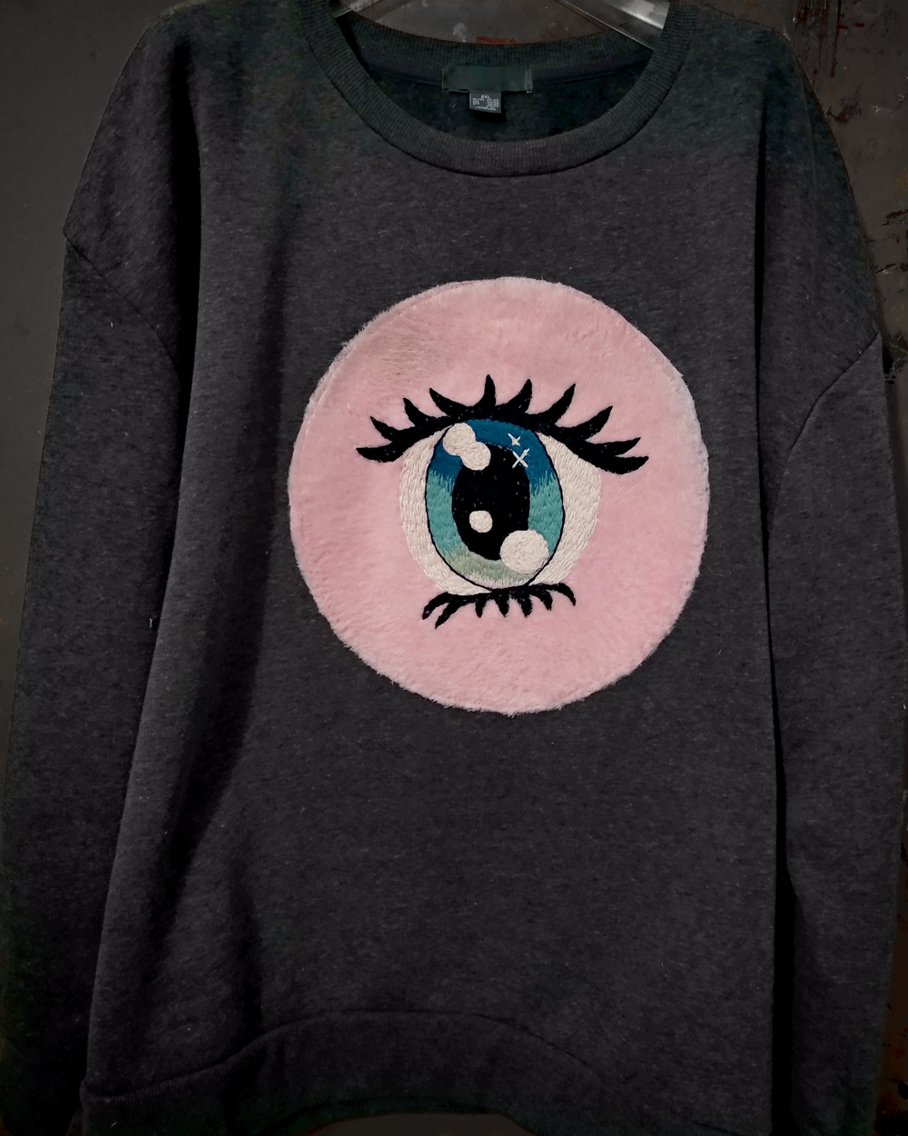 •  felpa occhio manga ricamato mano su tessuto peluch