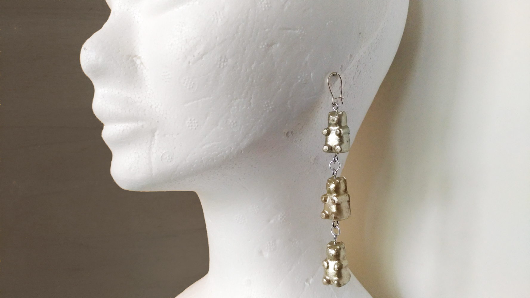 •  orecchini orsetti gomma in colla a caldo smaltata oro 3