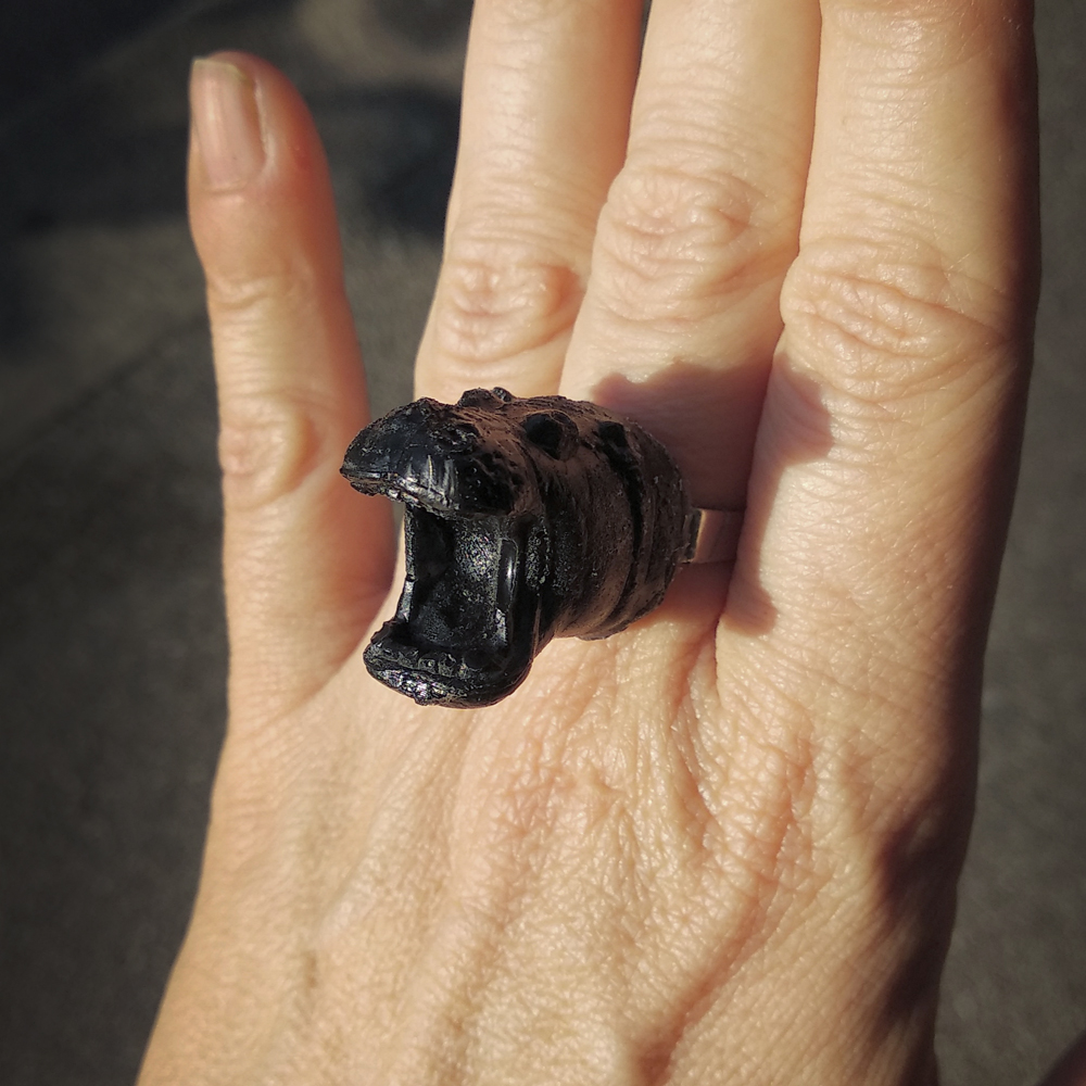 •  anello tassidermia ippopotamo in colla a caldo nera