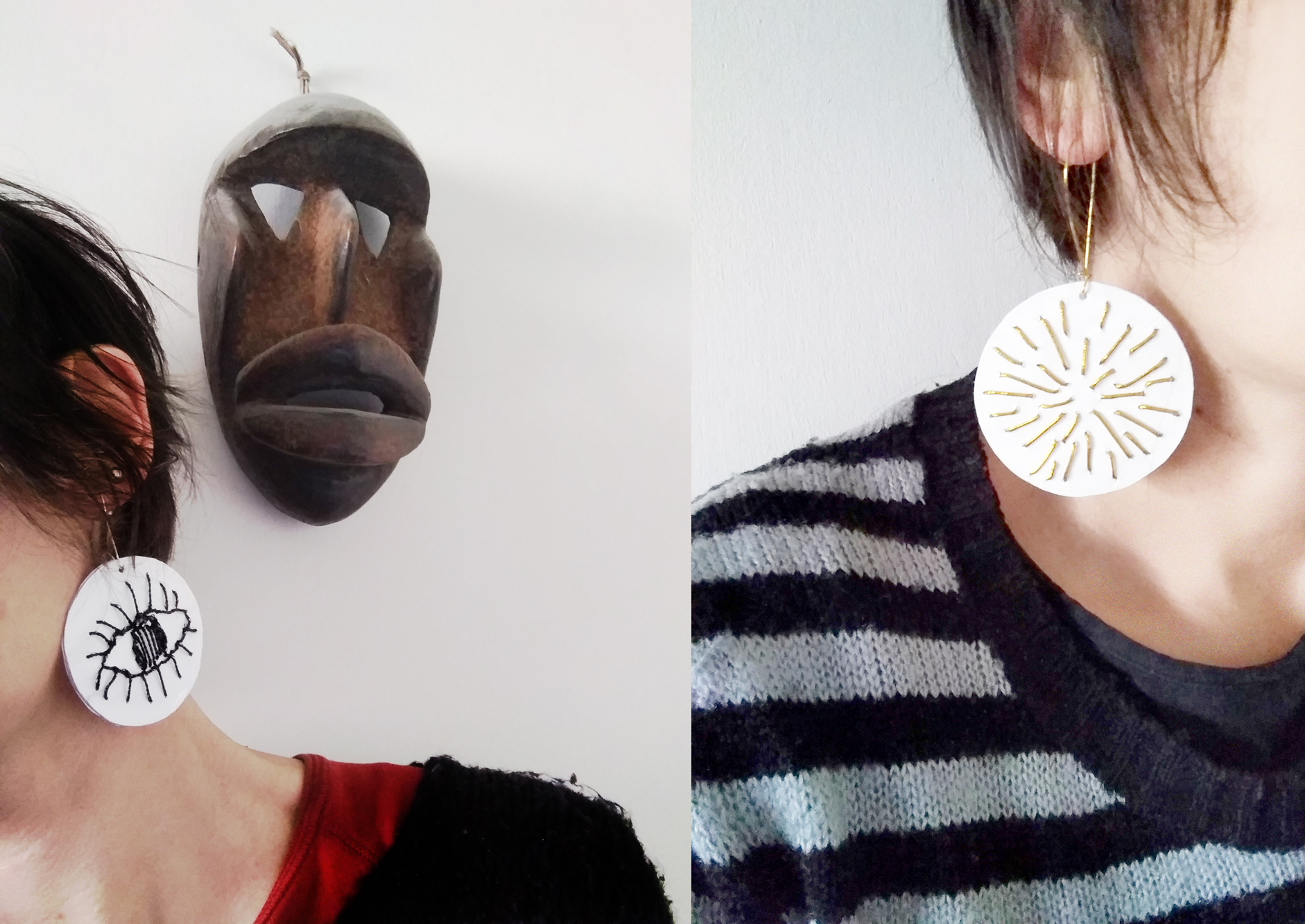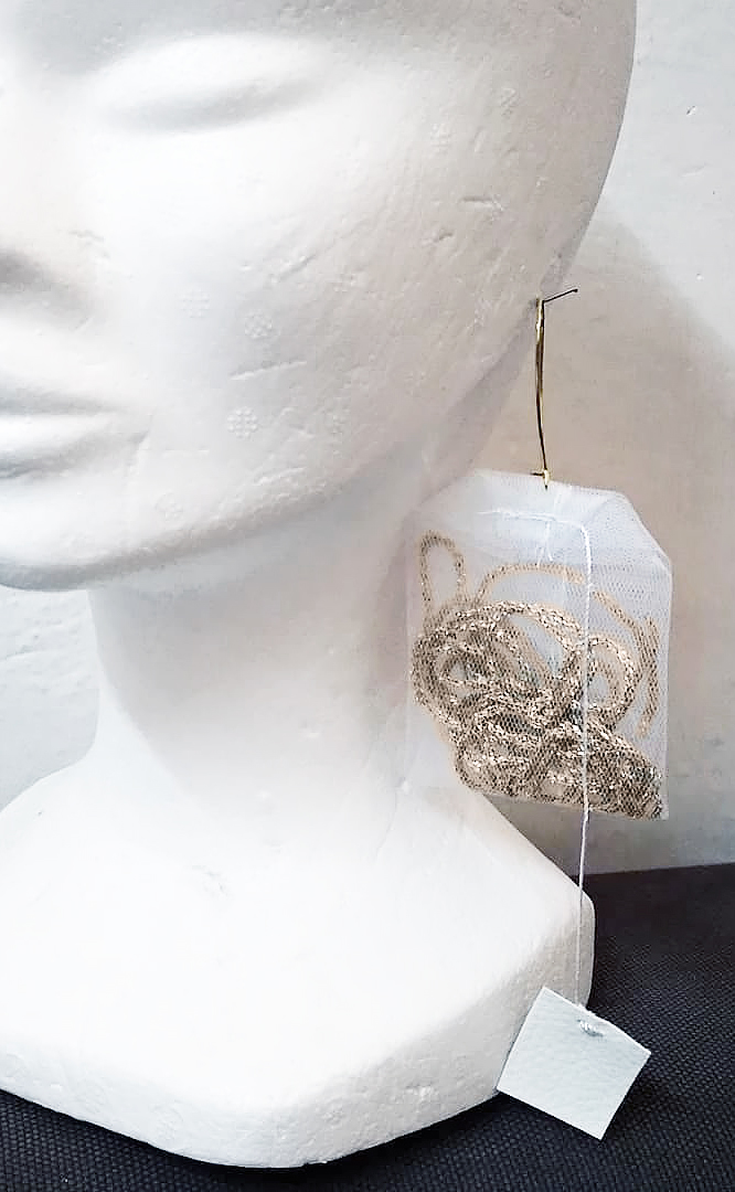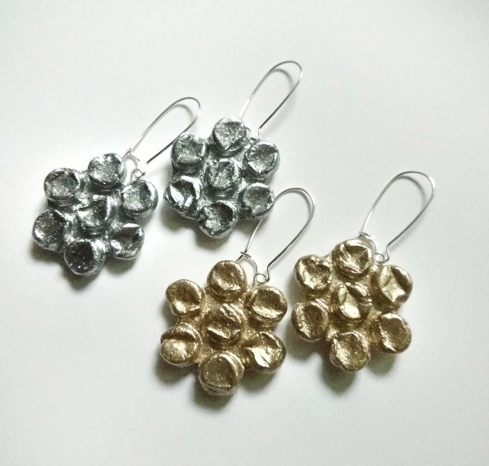 •  orecchino fiore di pluriball in colla a caldo smaltata oro argento