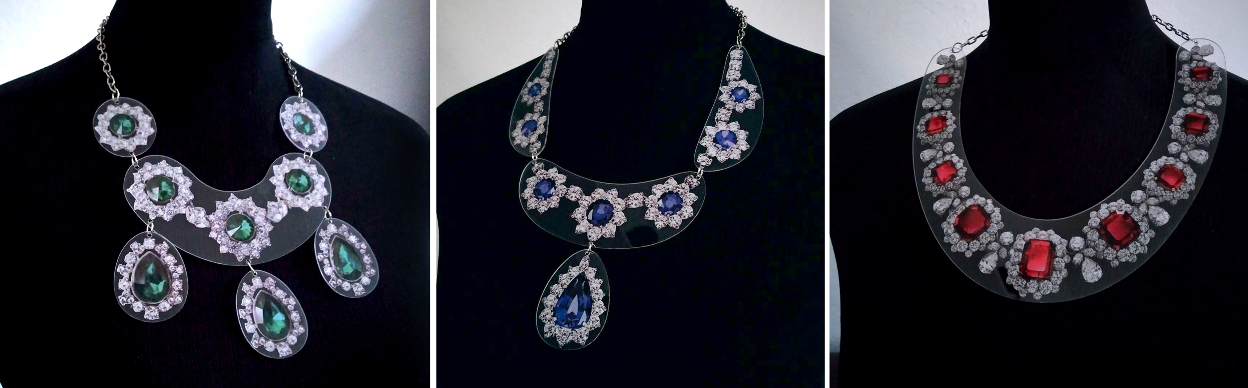 •  collane stampate su plexiglas diamanti pietre preziose 3a