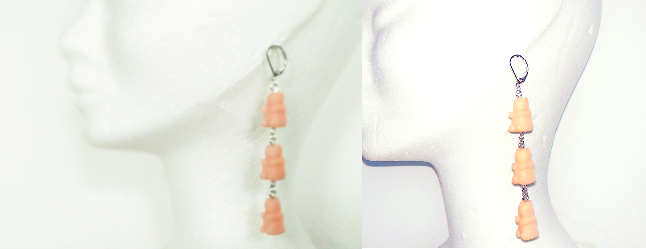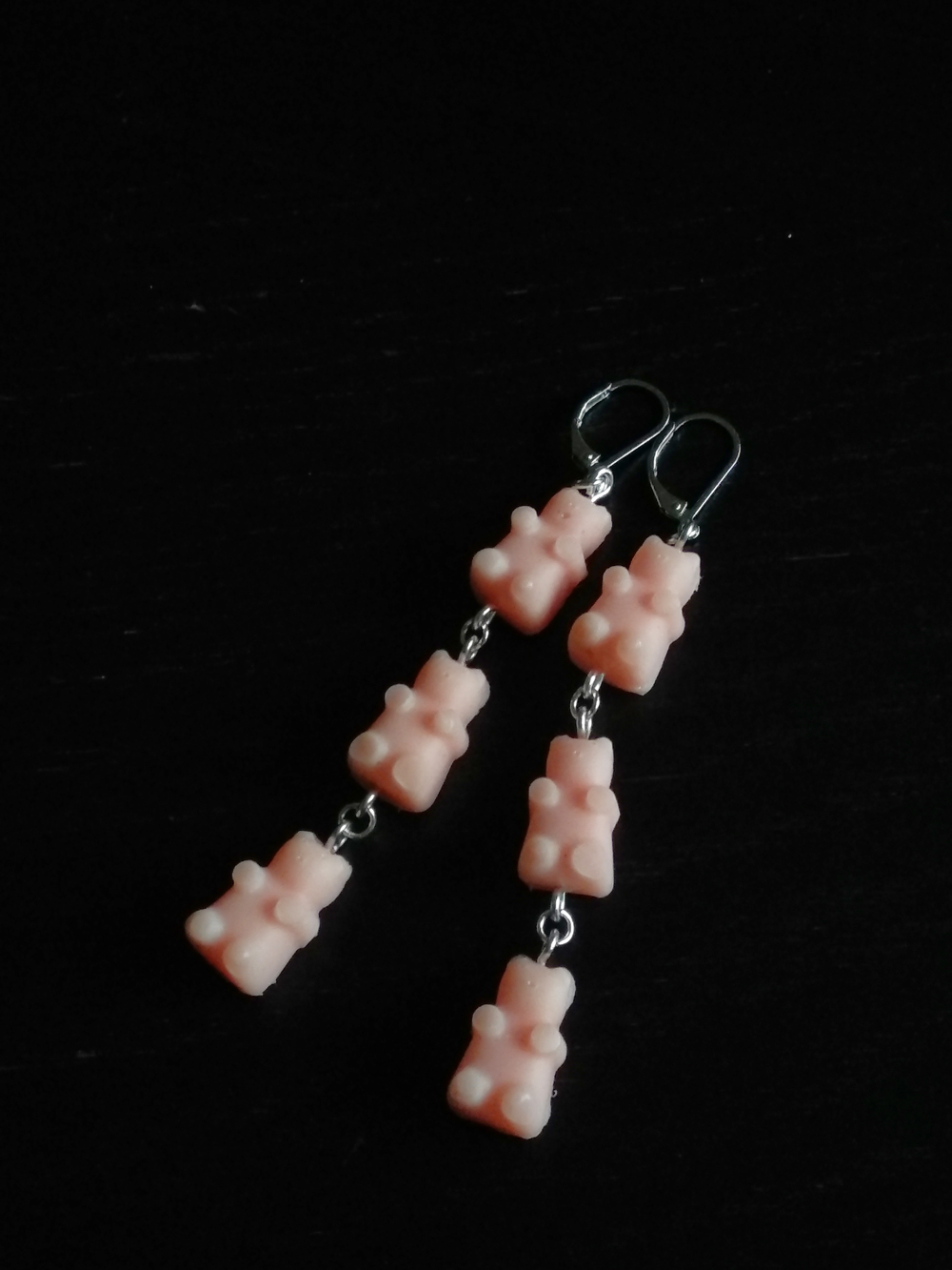 •  orecchini orsetti gomma in colla a caldo rosa d